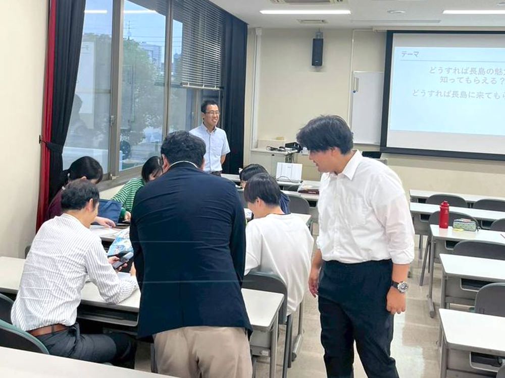 自治体政策論ゼミ(崎野ゼミ)では、令和7年10月21日に、長島町役場、内閣府地方創生支援官との協働による地域課題を考えるワークショップに取り組みました。