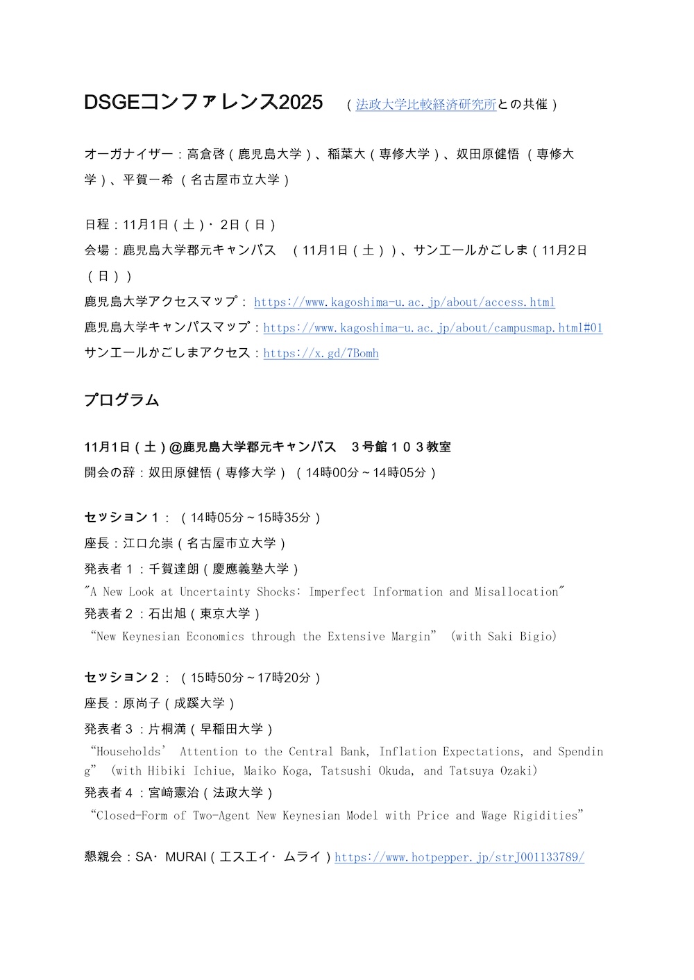 DSGE Workshopにつきましては、下記のリンクをご参照ください。
