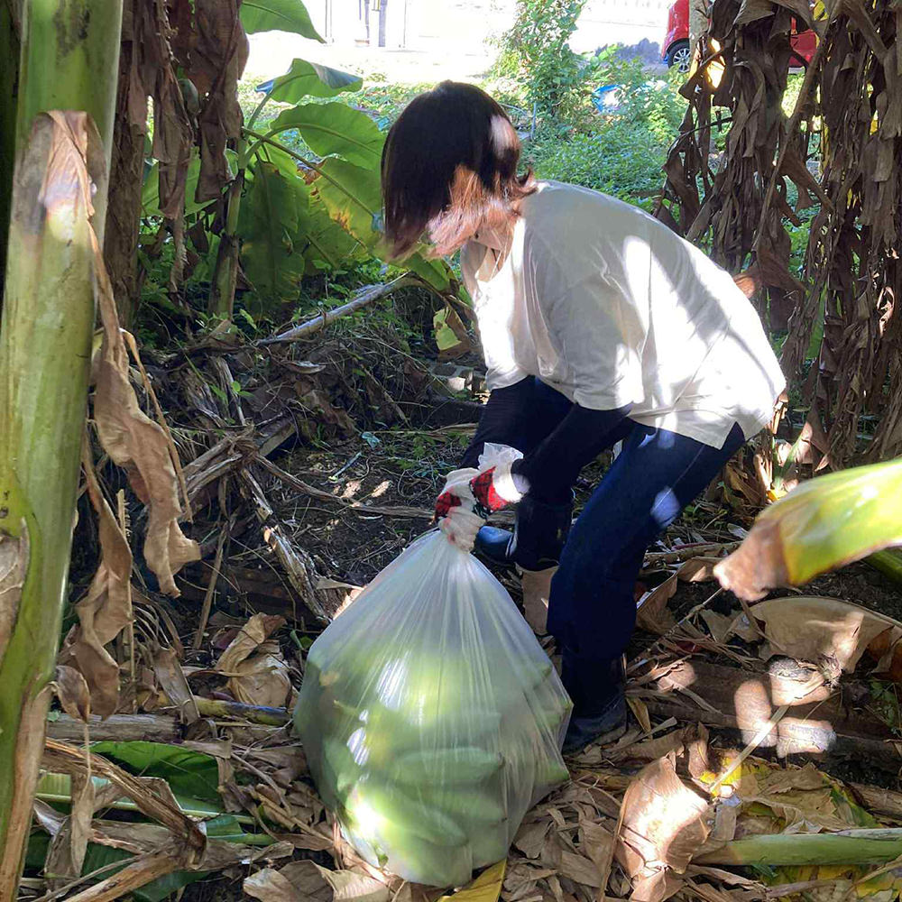 館長のバナナ畑でバナナ収穫